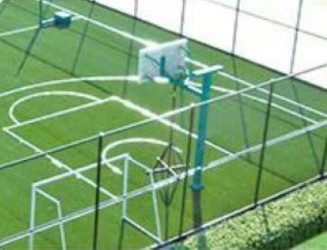 Стандартный комплект включает в себя раму и сетки, включая skynet (сетка над полем), фонарные столбы и систему газона.